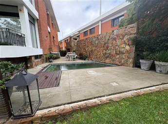 Excelente planta ubicada sobre Rivera, a pocas cuadras de Arocena. Alquiler sin muebles U$S 2700 + 25800 $ aproximados de gastos comunes o se puede alquilar amueblada en U$S 2900 Está unidad es un dúplex, con salida a patio y deck con piscina y parrillero de uso exclusivo. Recepción, amplio living comedor con estufa a leña salida a la terraza Cocina con comedor diario y salida al patio donde esta el parrillero, piscina y un patio amplio de uso exclusivo. Dos dormitorios , el principal amplio con el baño en suite. Tienen placares y persianas eléctricas. Baño social completo Escaleras hacia la planta baja donde se encuentra el tercer dormitorio muy amplio o playroom con salida a uno de los patios y servicio completo. Area de lavadero. Calefacción por caldereta a gas. Garage para 2 autos en fila. El edificio cuenta con vigilancia 24 horas, gimnasio , sauna y sala de masajes.